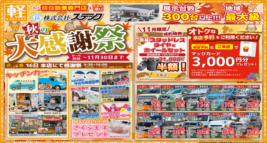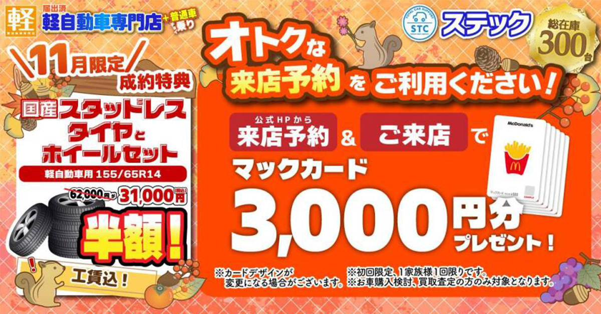 新車は国内全メーカー・中古車は展示車両常時300台以上、お車の購入のことならステックにぜひご相談ください。