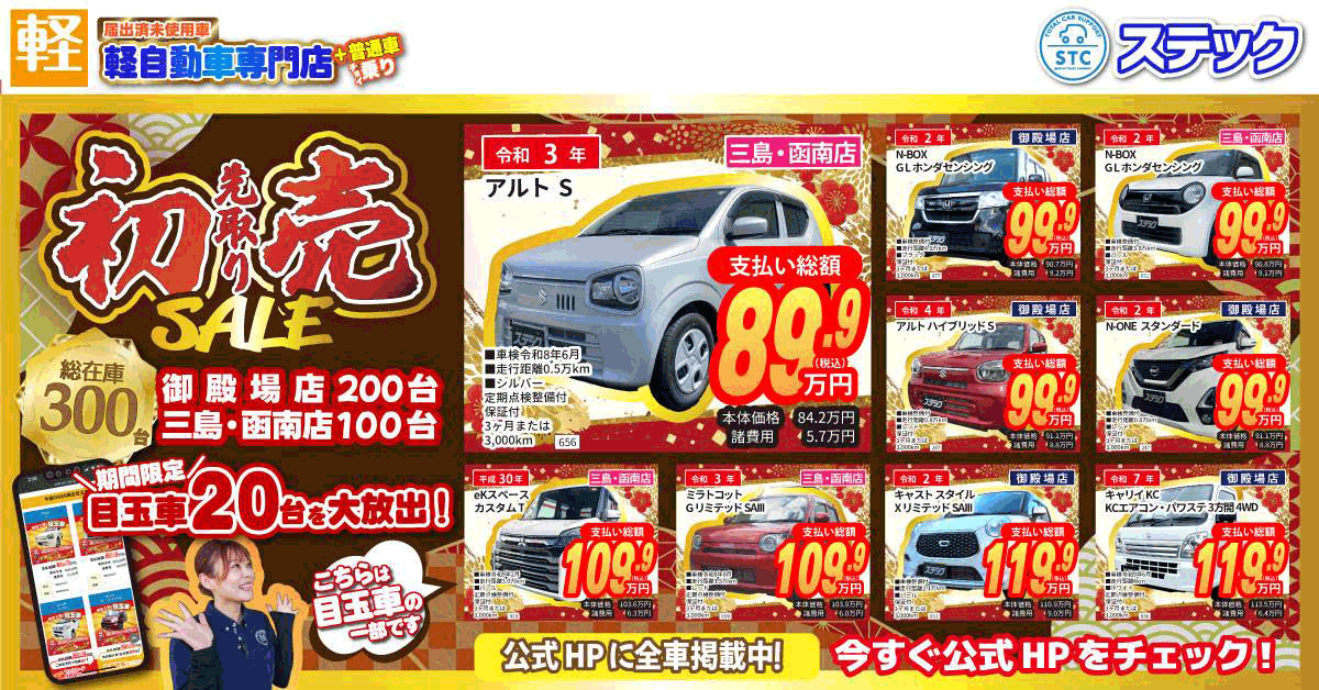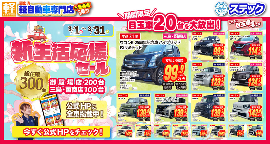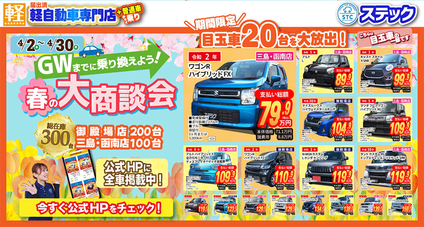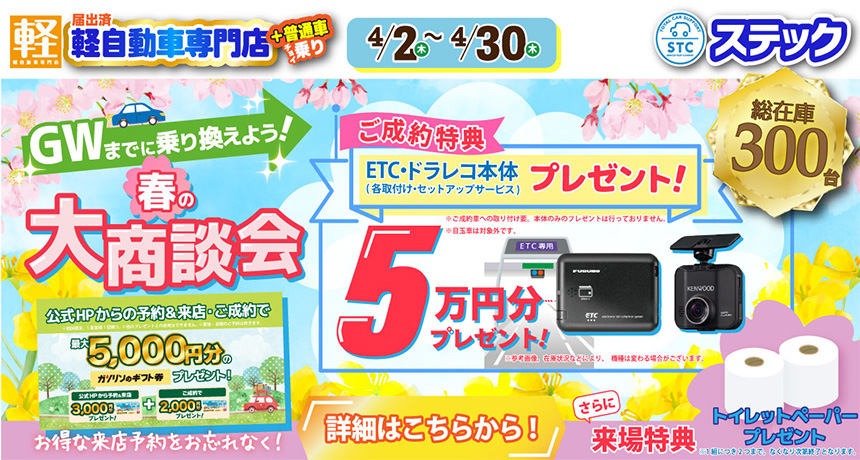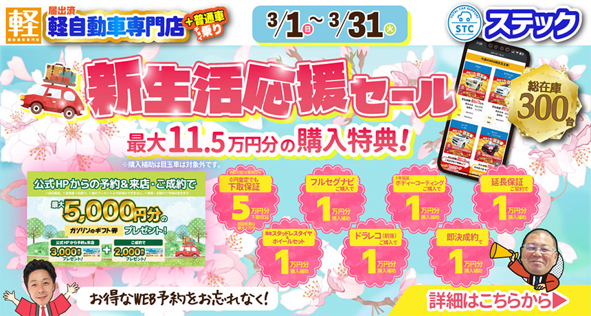 新車は国内全メーカー・中古車は展示車両常時300台以上、お車の購入のことならステックにぜひご相談ください。