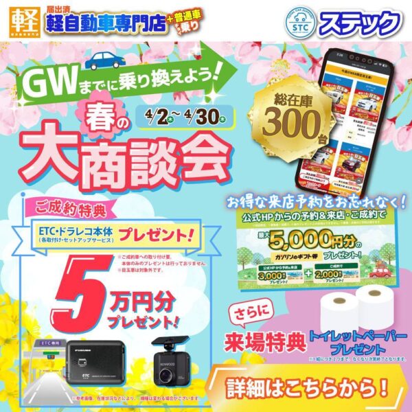 新生活スタートにぴったりのこの季節お得に車を手に入れるチャンスです!